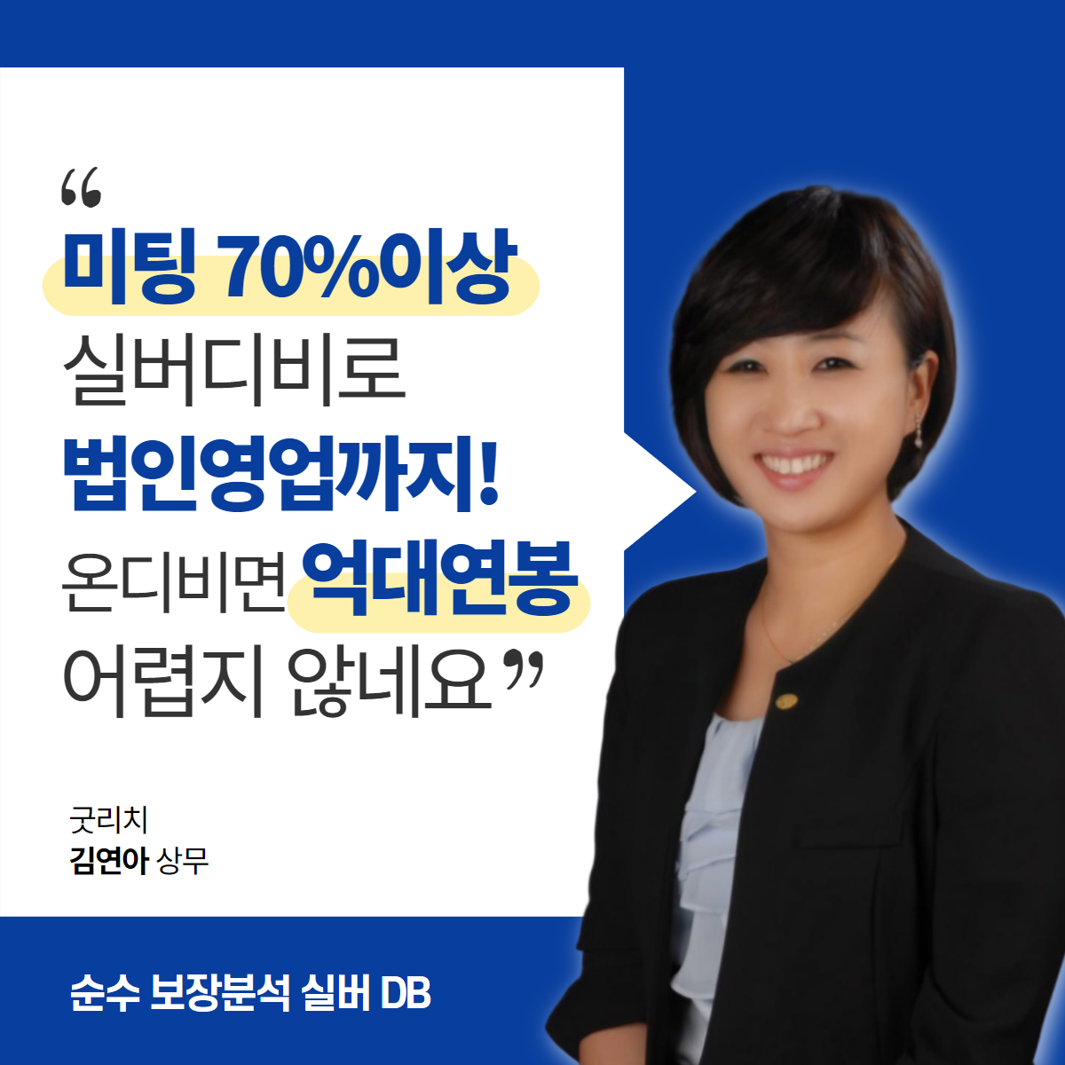 이는 업계 평균에 비해 상당히 높은 수치로 배정된 DB 중 절반가량이 실제 상담 또는 방문 미팅으로 이어지고 있다는 의미입니다.